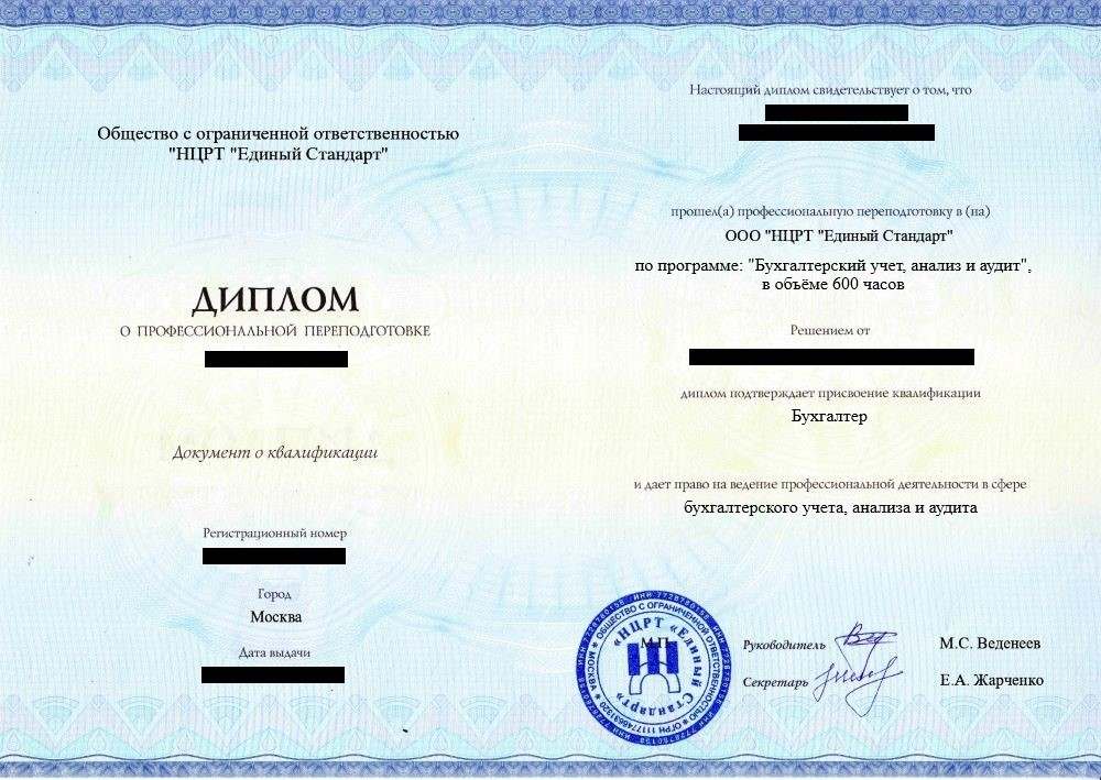 • Диплом о профессиональной переподготовке установленного государством образца. Срок действия: бессрочно.