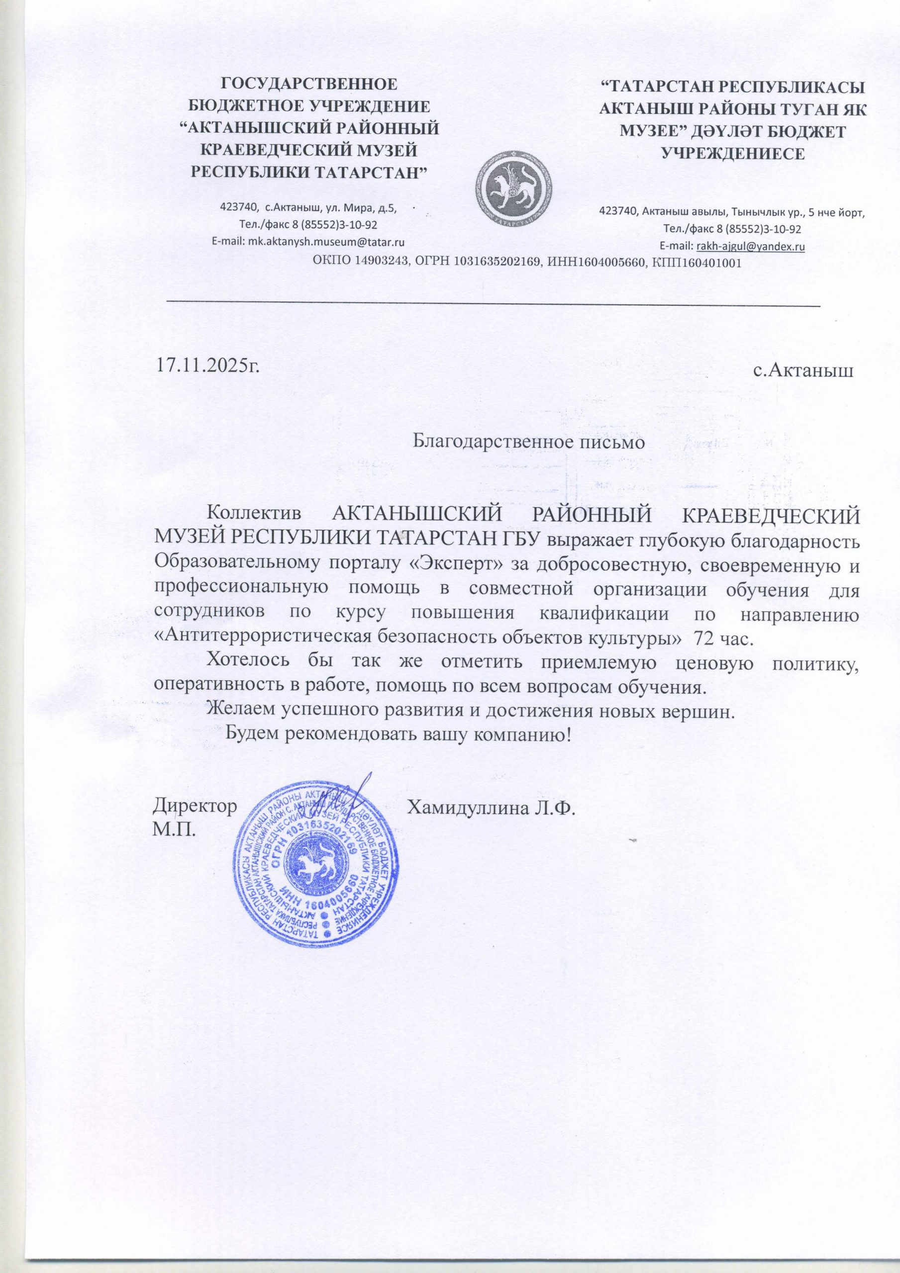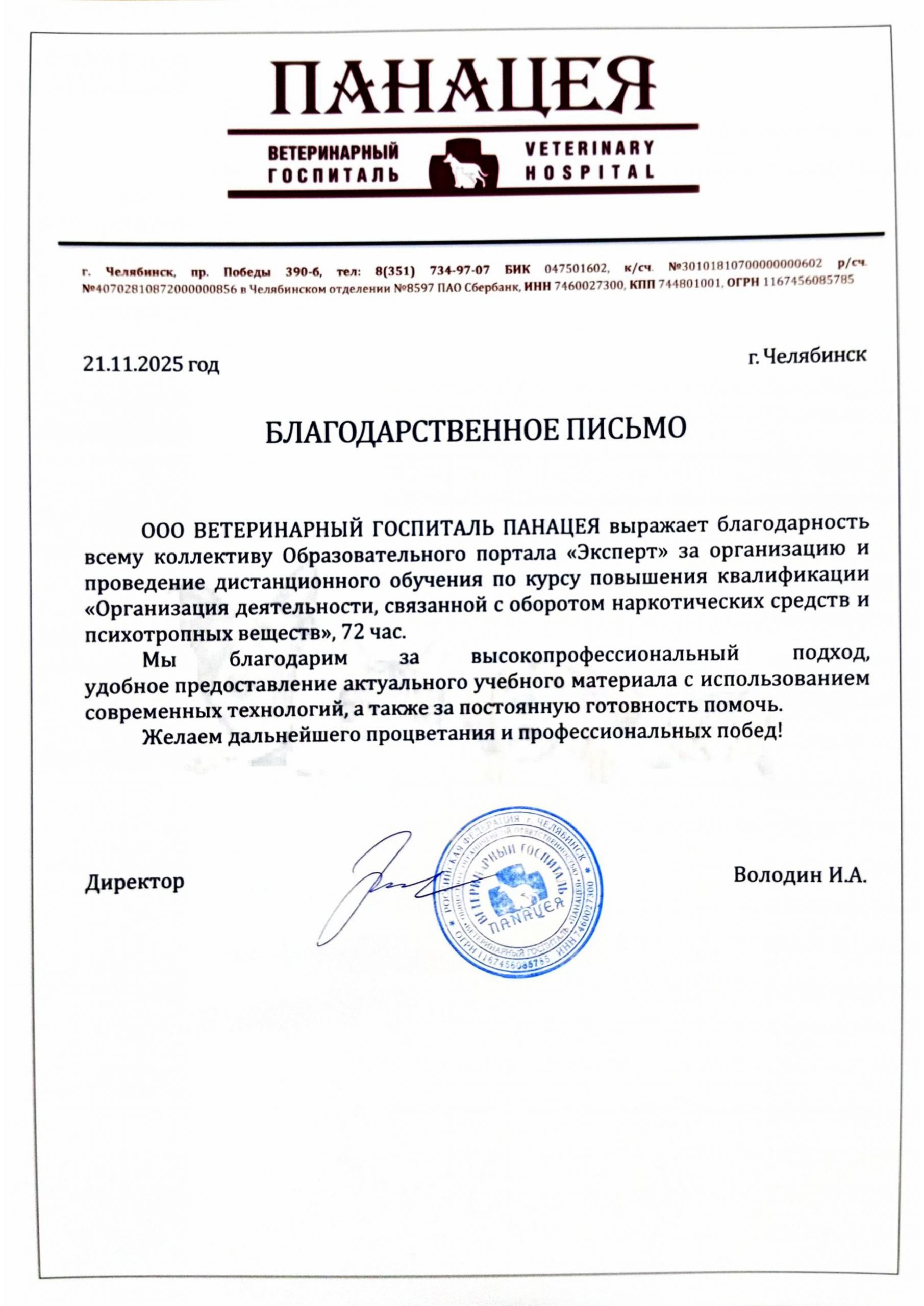 Все благодарственные письма → смотрите на этой странице
